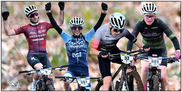 | * Scratch : Théo AUZOUX (8) Team Joly Passion Specialized et Laly GUYOT (681) Team VTT Jeumont * Juniors : Mathis WEIL (53) 2ème du scratch ORC Epône et Mélyne REBOUX UC Darnétal |
